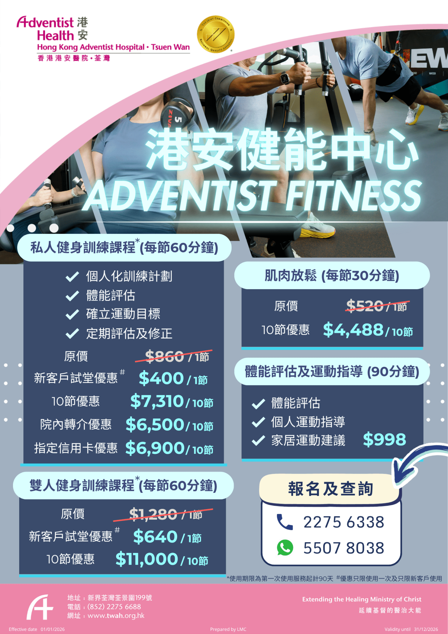缺乏運動是多種疾病的其中一個主要高危因素,要達到全人健康,運動是不可或缺的。各人的健康及運動需要不盡相同,要達到健康目標及避免不必要的運動創傷,專業的持牌健身教練透過指導正確的鍛鍊方法和技巧,助您「有效率及安全地」達到訓練目標,建立良好的運動基礎。
